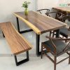 Mặt bàn gỗ nguyên tấm được làm từ 1 thân cây, mặt bàn 100% gỗ Me Tây tự nhiên, màu sắc tự nhiên của gỗ. kết hợp chân sắt sơn đen phong cách Hiện đại